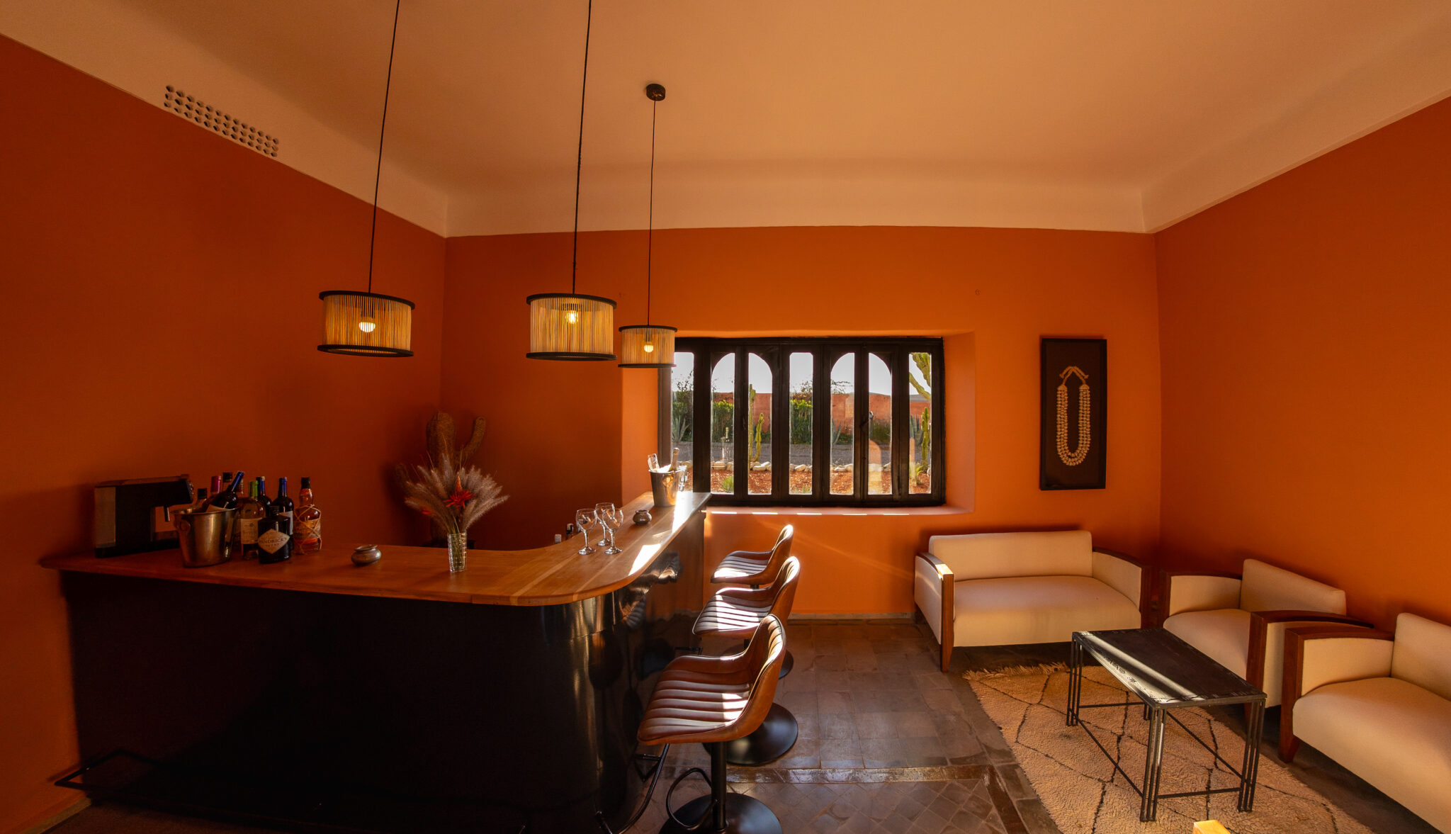 With a 200-square-meter infinity pool, terraces, garden lounges, and modular spaces, the Domain naturally adapts to yoga retreats, corporate events, or intimate private celebrations. create a welcoming atmosphere, while terraces across the estate open onto sweeping views of the Agafay desert, grounding the villa in its unique setting.